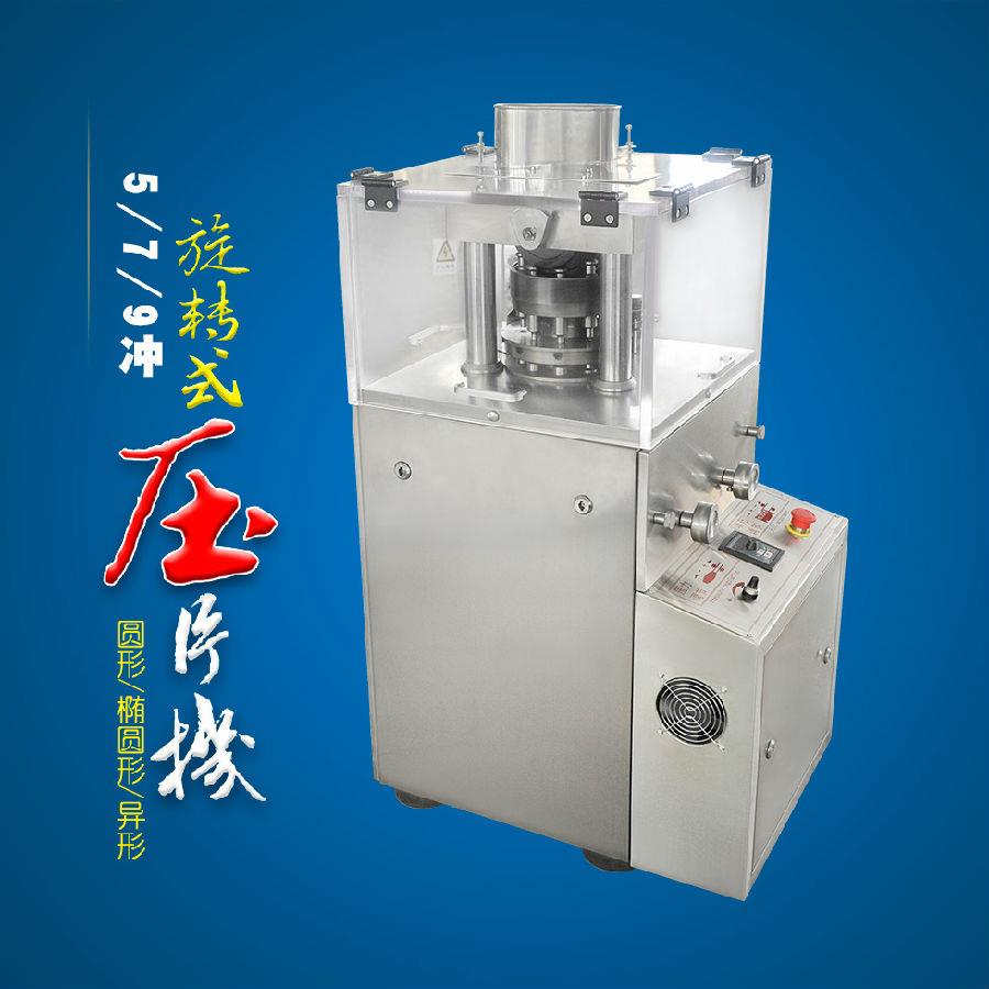 旋轉式中藥壓片機可將粉劑、小顆粒限制成12毫米以下的圓形或異型片劑,產量為9000-15000片/小時,片劑厚薄、壓力巨細、壓片速度均可依據客戶的要求隨意調度。
